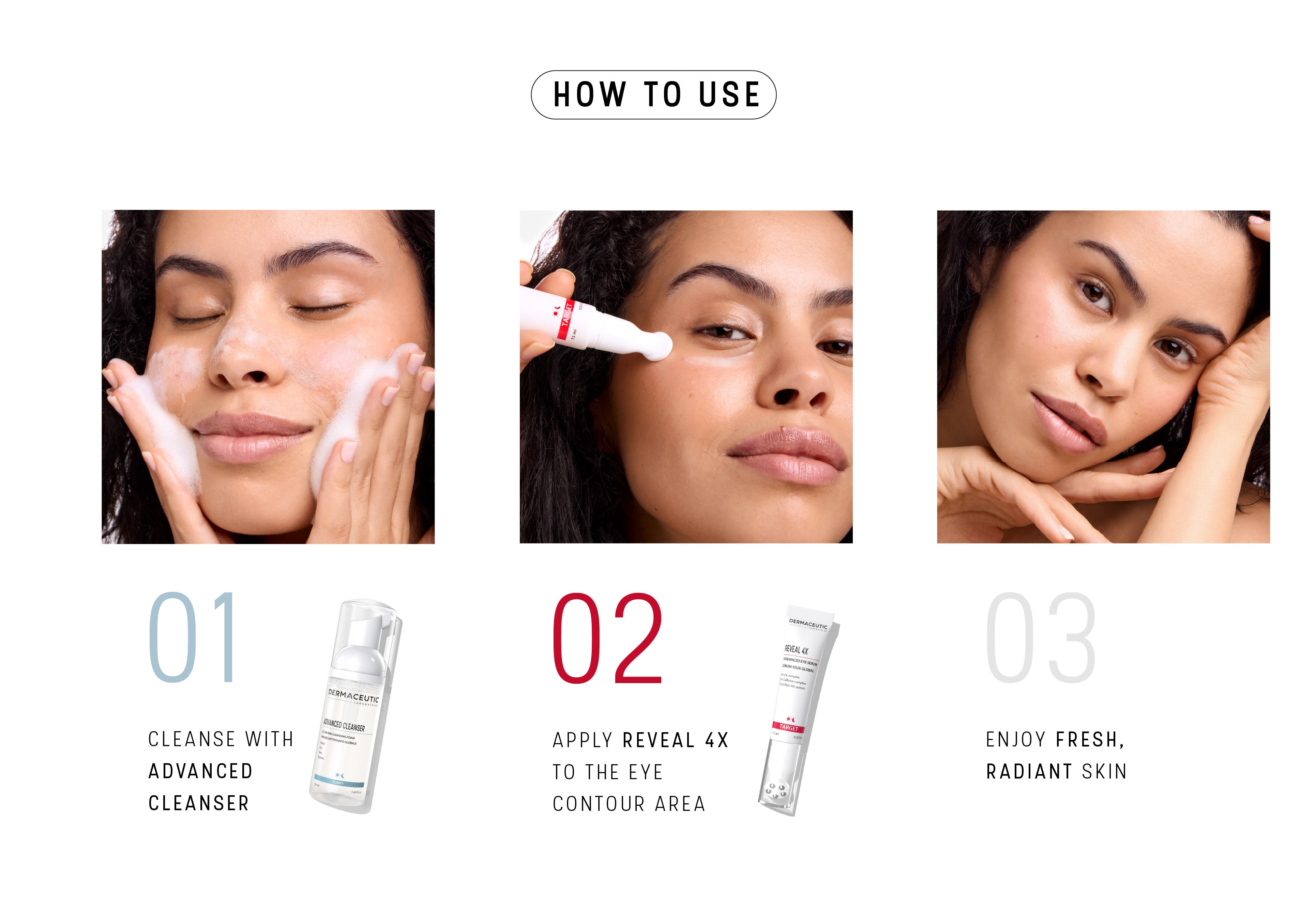 - Apply Reveal 4X morning and night for anti-wrinkle and anti-fatigue action.